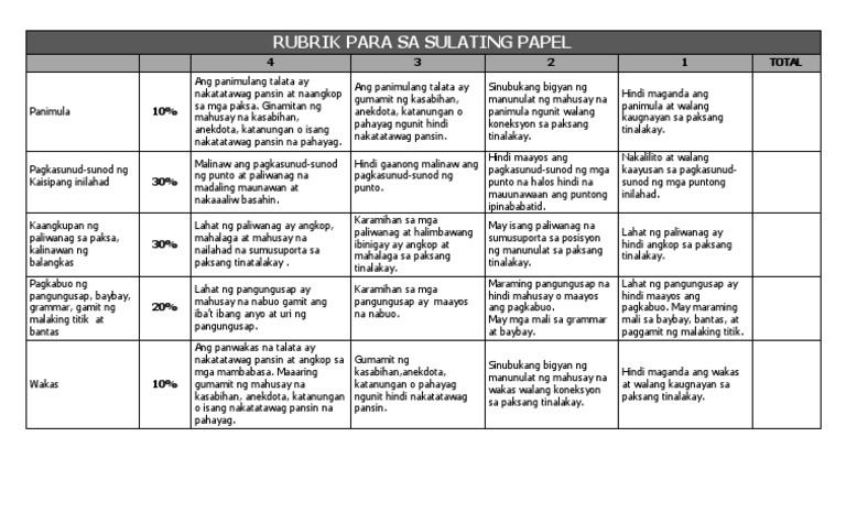 Rubrik Para Sa Sulating Papel Pdf