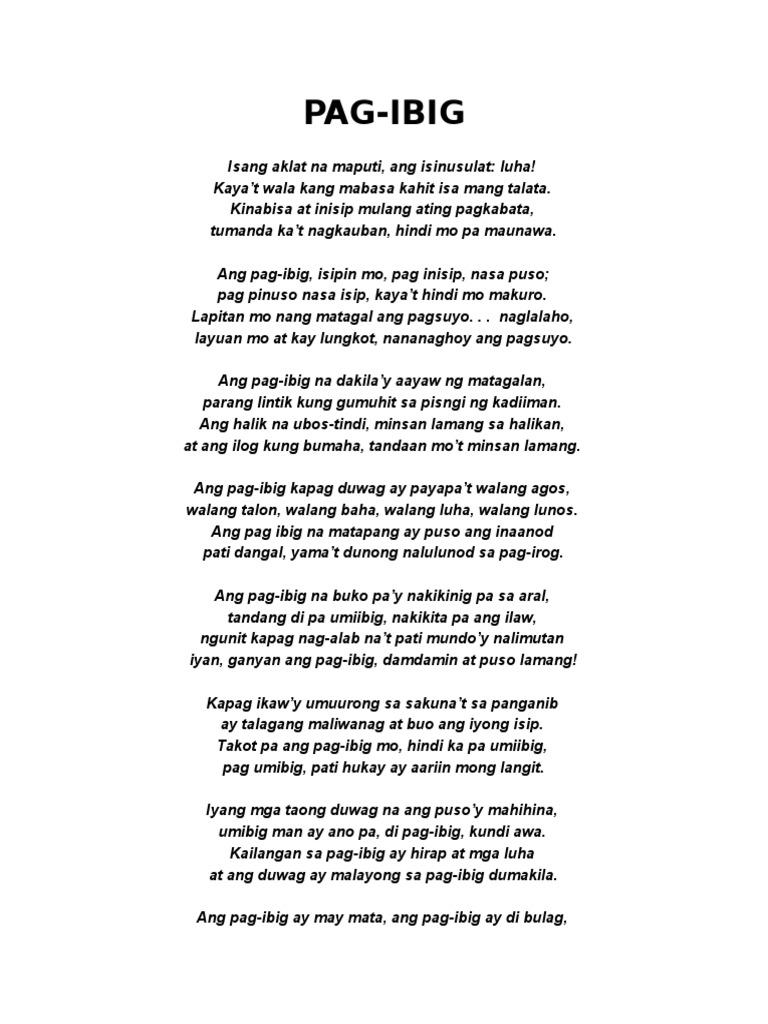 Dahil Sa Pag-ibig Pag-Ibig Tula ni Jose Corazon de Jesus Isang aklat na maputi ang isinusulat. Contextual translation of talata ng pag ibig sa panimula at wakas into English. Hayaan ang pag-ibig ng Diyos na punan ang iyong puso habang binabasa mo ang mga talatang bibliya tungkol sa pag-ibig.
