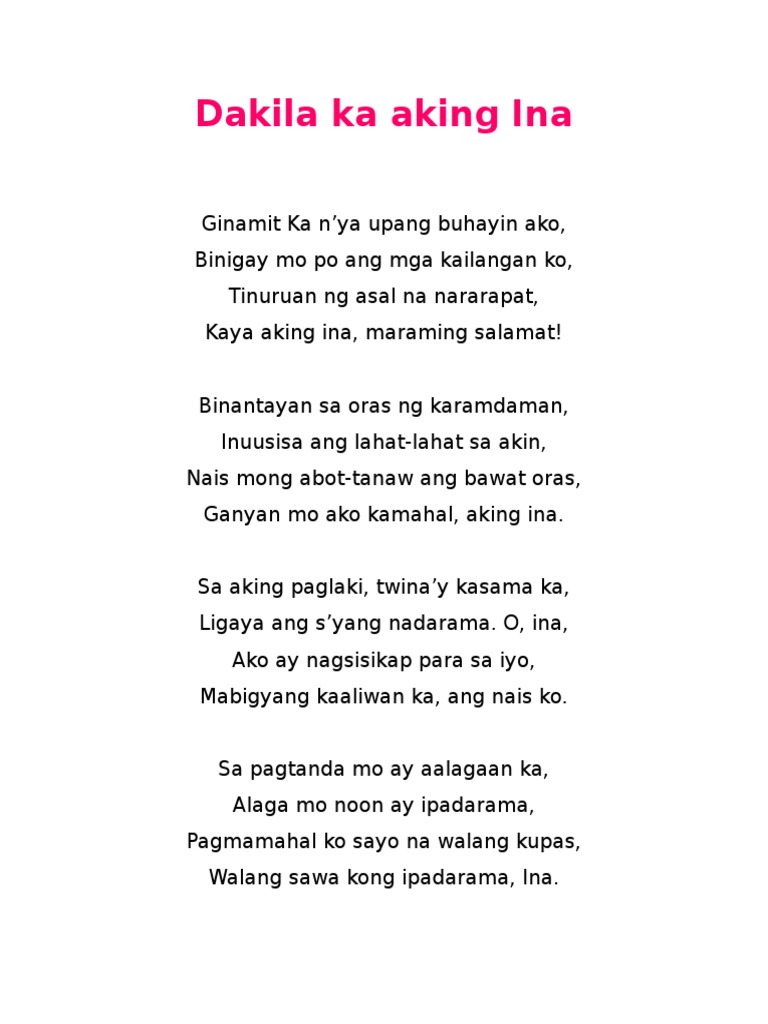Clara Ina Akin 3336 NW 26 2 pm Monday at Guardian Funeral Home with burial in Rose Hill Cemetery. See more of Mga Tula at Talata on Facebook. Ano ang tungkulin ng ina ng ipinakita ng talata a.