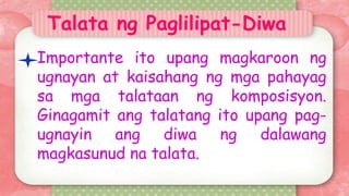 VISIT This is a complete list of sources that I found to be helpful in researching Halimbawa Ng Maikling Talata. Talatang Paglilipat Diwa ito ay sinasama o kinukuha ang mga nasabi nang ideya sa mga nauna.