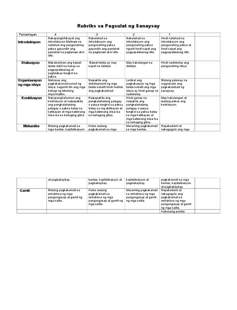 Rubrik Sa Pagsulat Ng Sanaysay Pdf