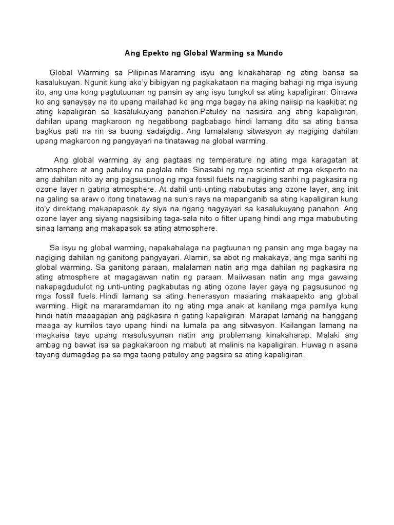 Talumpati Global Warming Docx Global Warming Sa Pilipinas Maraming Isyu Ang Kinakaharap Ng Ating Bansa Sa Kasalukuyan Ngunit Kung Ako Y Bibigyan Ng Course Hero